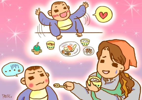 あまり好きではないおかゆの時は、口をきゅっと結んでいたのがおかしかったけど(笑)、お味噌汁と混ぜたら、見事完食!