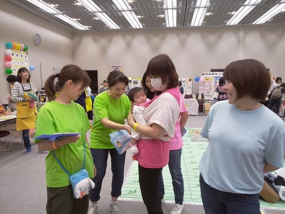 抱いていた赤ちゃんをサポーターに預けて、 リラックスしてケアを受けるママさん達。