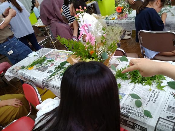 1人ひとりが思い思いの活け方で完成!